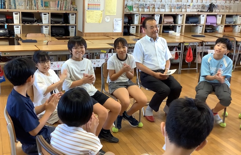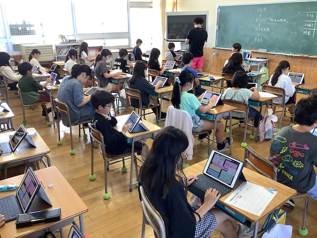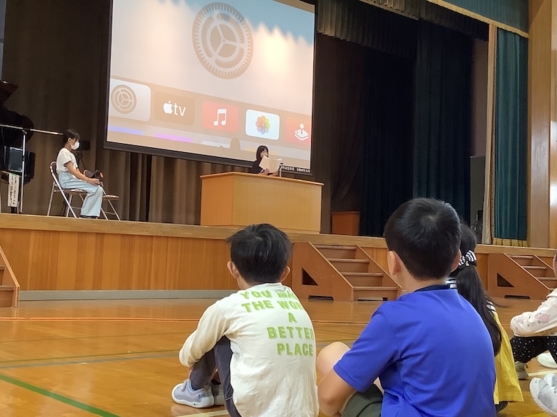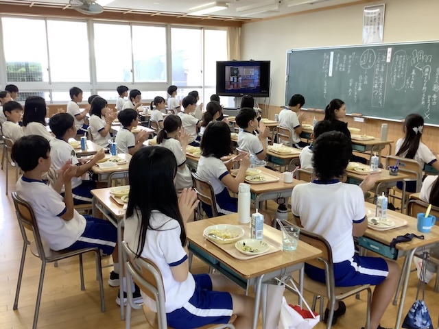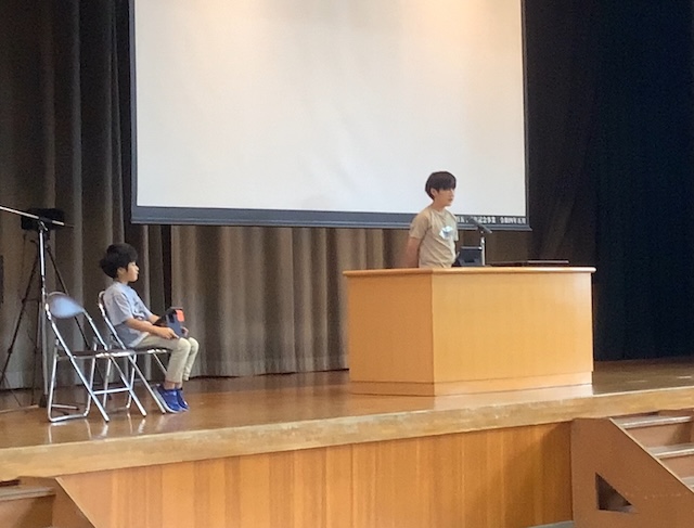 今日の全校朝会は、暑さを避けるため、体育館ではなく各教室をオンラインでつないで行いました。代表児童のこれからの目標についてのお話がとても立派で、みんなも一緒に頑張ろうという気持ちになりました。