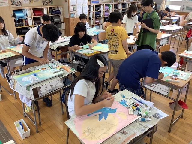 昨日に引き続き、4、5、6年生の作品制作の様子をお伝えします。