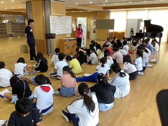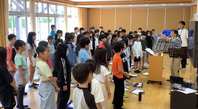 4年生は、来月に迫っている「にじいろ音楽祭」で披露する合唱曲について、学年全員で練習しています。二部合唱にチャレンジしていて、副旋律担当の子どもたちは、主旋律の音につられないようにするのを頑張っています。今は苦労していますが、これから少しずつよりよい合唱になっていくことでしょう。