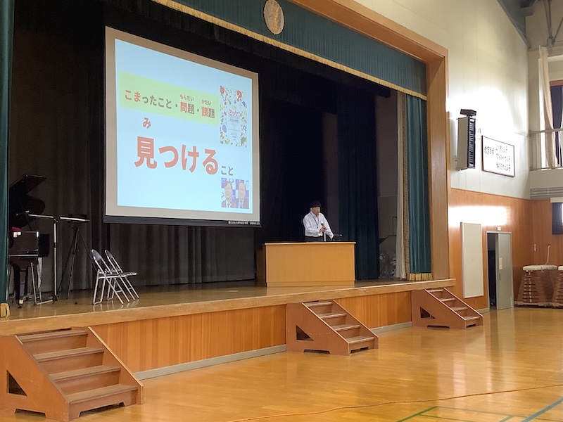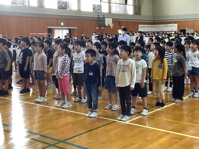 また、代表児童2名の発表も行い、マラソンを頑張りたい、委員会の仕事を頑張りたいという自分の目標を語りました。全校の子どもたちも同様に後期に頑張りたいことを思い描いたことでしょう。