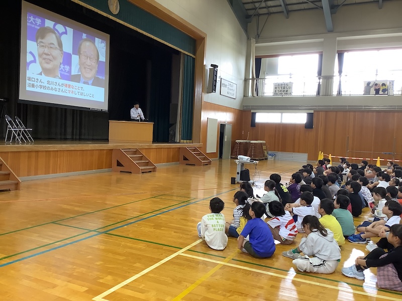 沼垂校でも第4学年が総合の学習で福祉を取り扱い、高齢者の実際を知り住みやすい街づくりを考える学習を進めている関係から、認知症についても学んでいます。