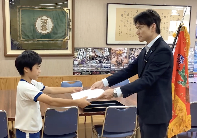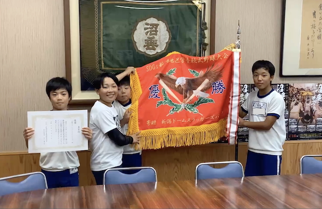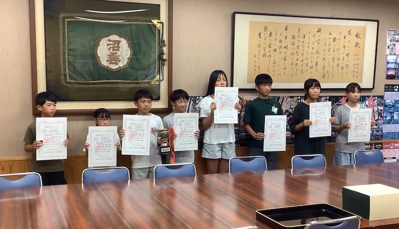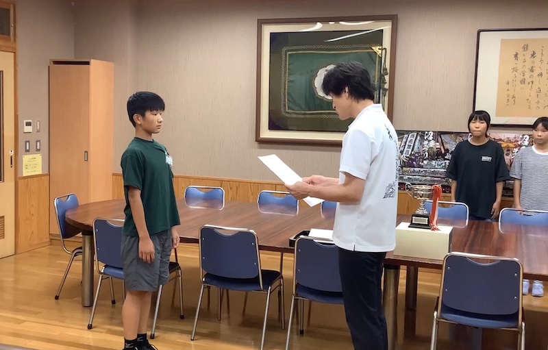 今回は、夏の新潟市小学校陸上競技記録会入賞者と地域野球クラブ沼垂ミラーズの大会準優勝が対象です。選手の皆さんは、堂々と賞状等を受け取りました。