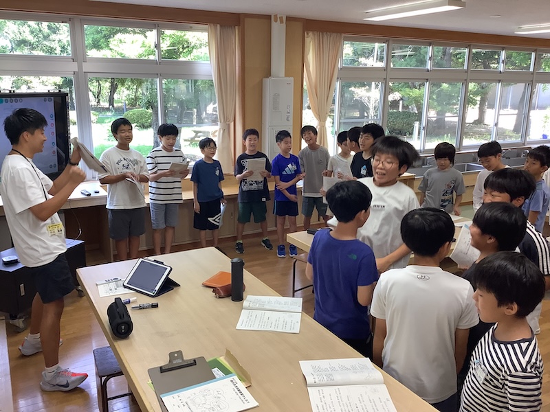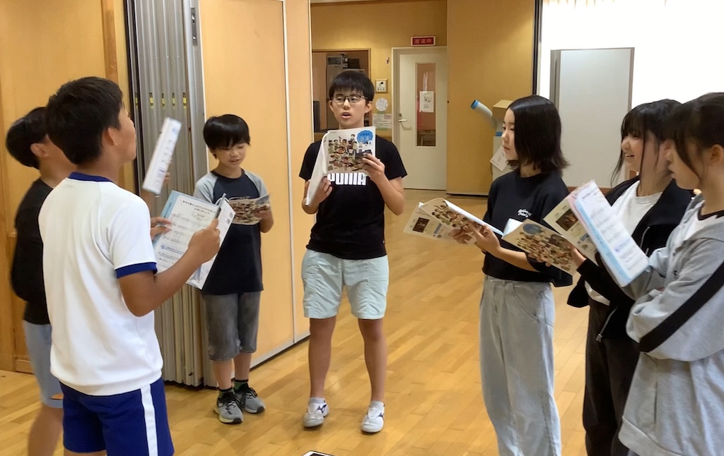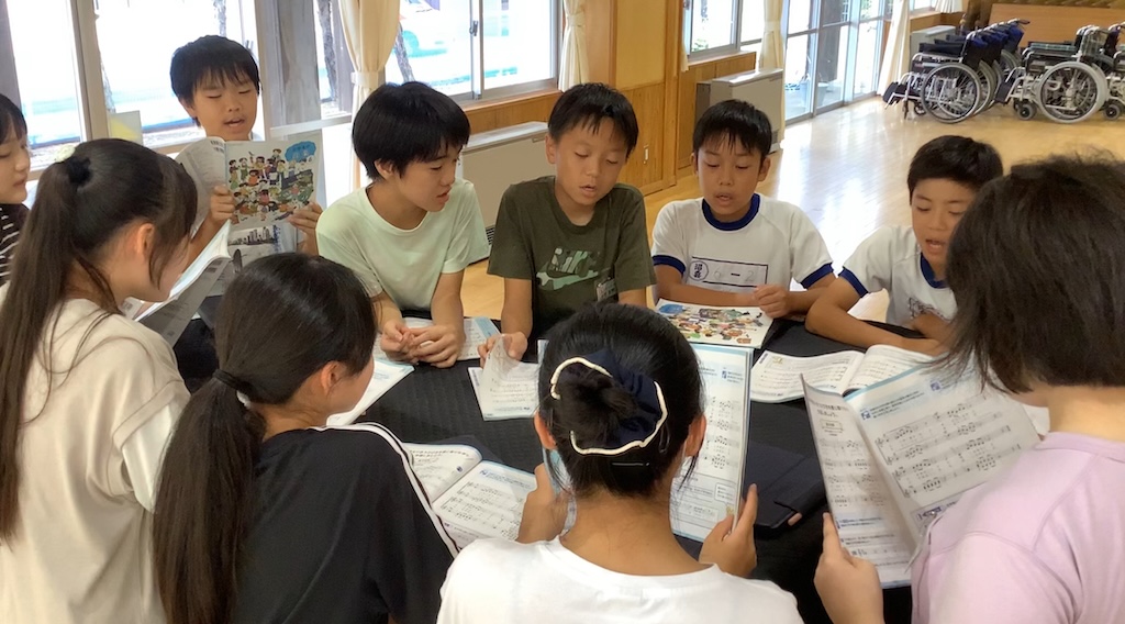 職員室の中まで、元気できれいな歌声が聴こえてきたので、何だろうと思い教室をのぞいてみると、5年生が歌の練習をしていました。来週の月曜日、火曜日に5年生が実施する自然体験教室の準備のためです。ちなみに、行き先は胎内市にある県立少年自然の家です。