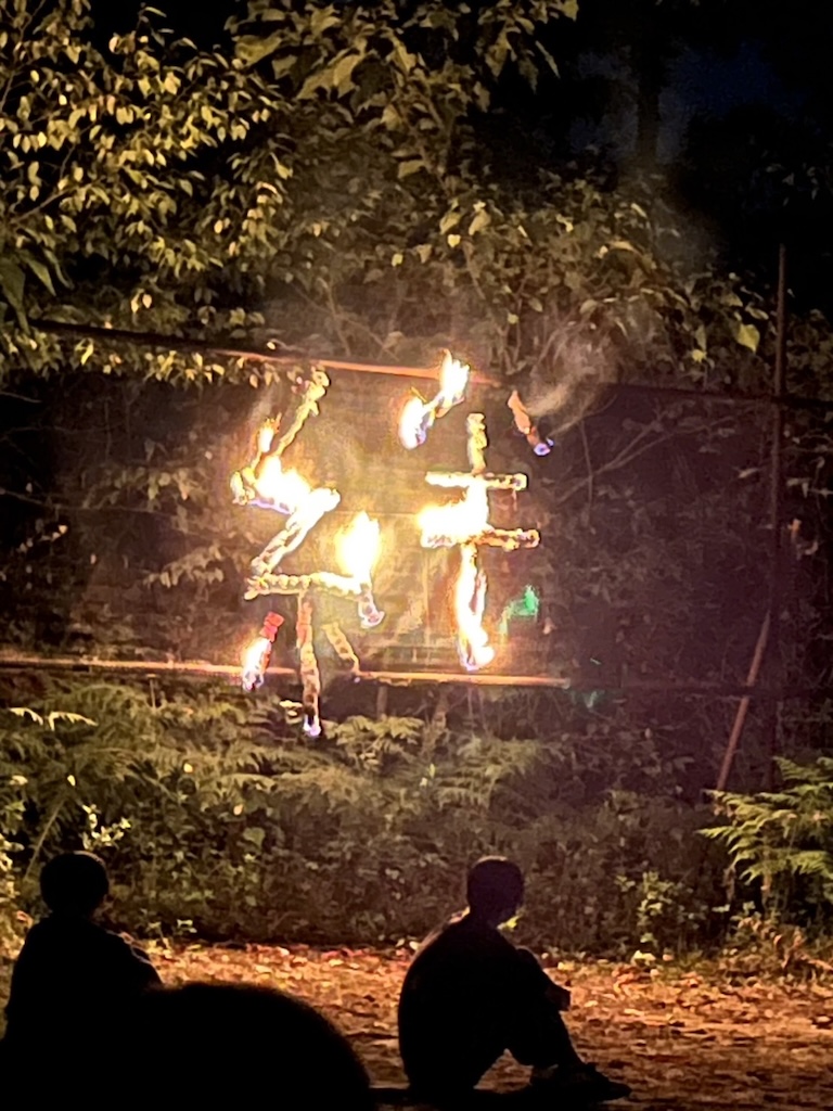 陽が傾いた静かな森の中、キャンプファイアが始まりました。