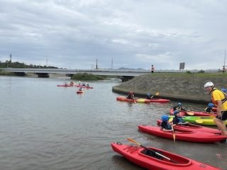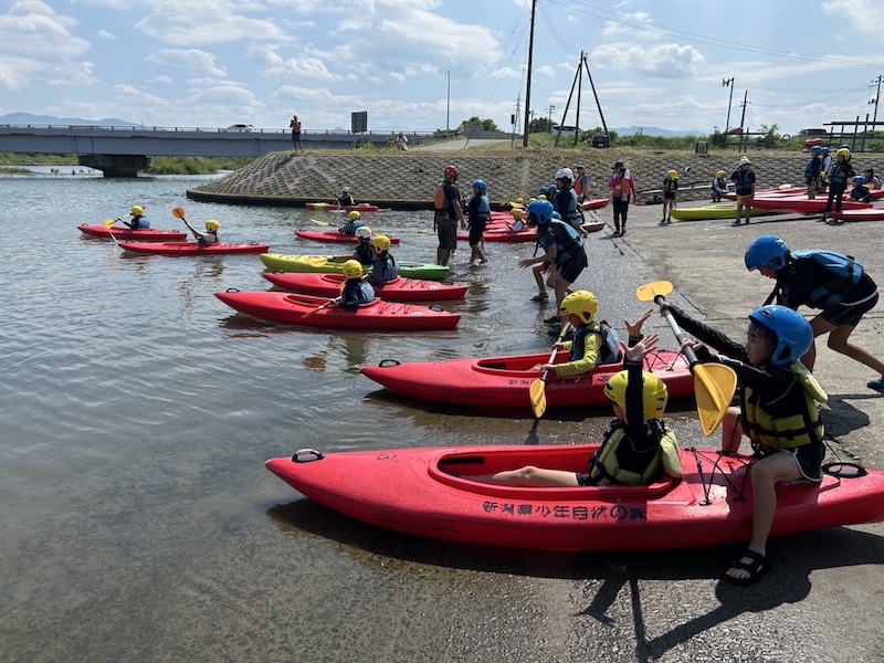 メインの活動はカヌー体験です。胎内川の河口付近で一人1艇使用して乗ります。