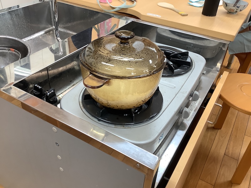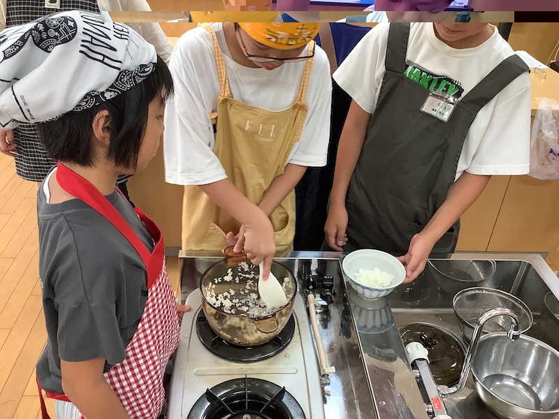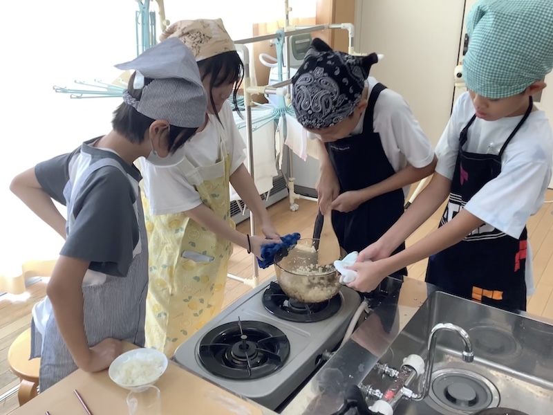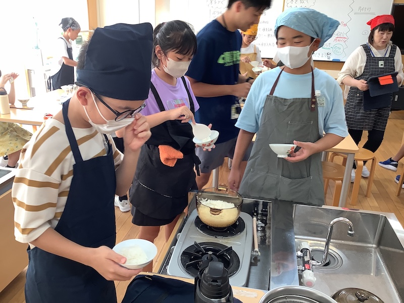 子どもたちが協力して作業していたおかげで、ご飯はとても美味しく炊けていました。給食で出ているご飯と遜色ない感じでした。
