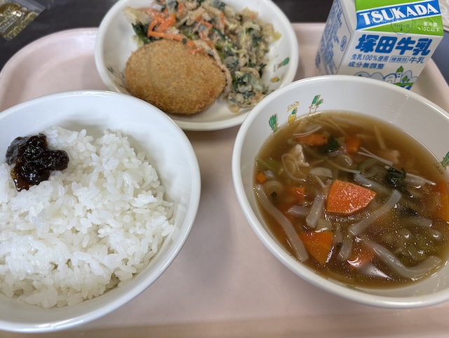 これにちなんで、今日の給食はお月見献立でした。お汁に入っている白玉が、野菜と絡みながら、ふわふわもちもちでとてもおいしかったです。