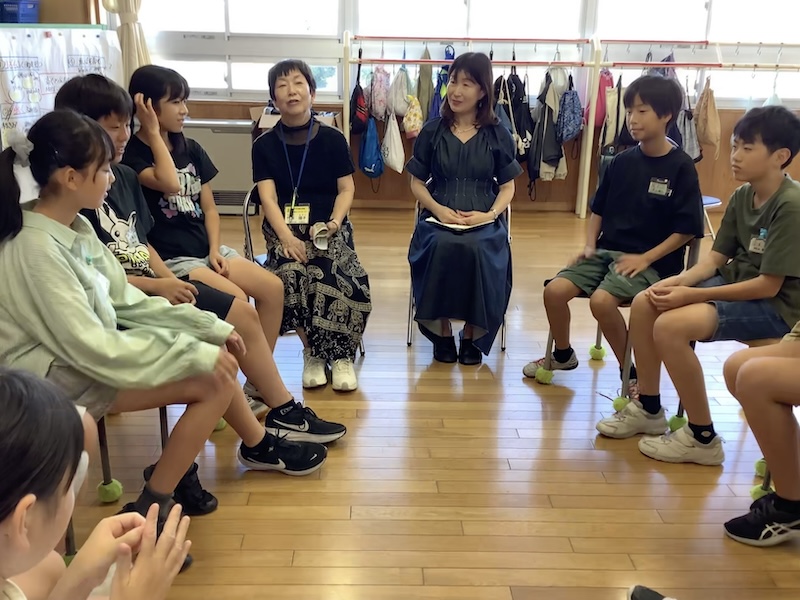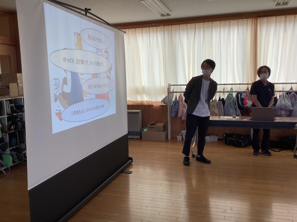 今日は、特別養護老人ホーム「くりの木」の方からお越しいただき、認知症についての概要を教えてもらいました。言葉は耳にしたことがあっても、実際にはどのようなものなのかは分かっていない子どもが多く、認知症になって時間や月日、場所などが分からなくなることや、環境や周りの人の接し方で症状の改善がゆるやかに進むことなどの新しいことが分かりました。