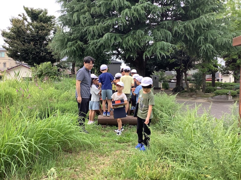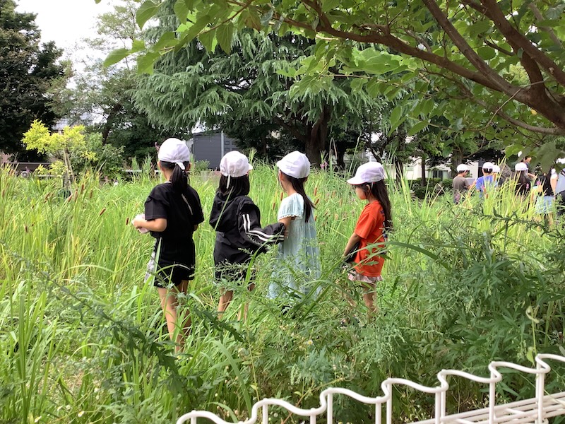 先週ビオトープ近くに2年生が集まっていました。飼育ケースを持った子どもが何人かいます。何をしているのかを尋ねてみると、虫とお別れ会をしているとのことでした。これまで飼って世話をしてきたバッタなどを、元いた場所に返すところだったのです。
