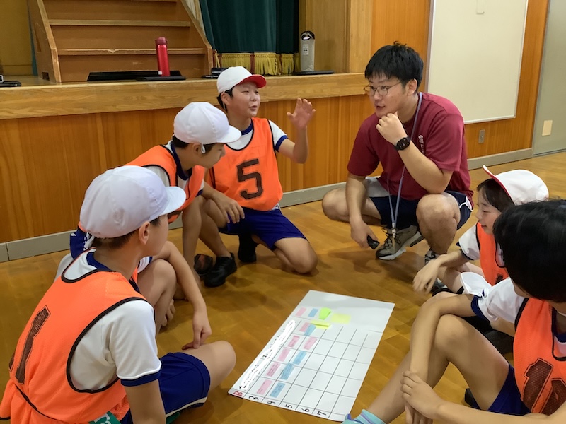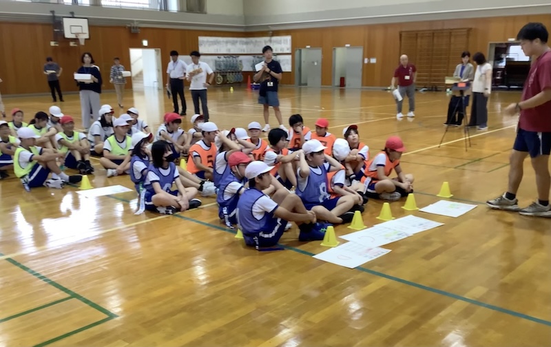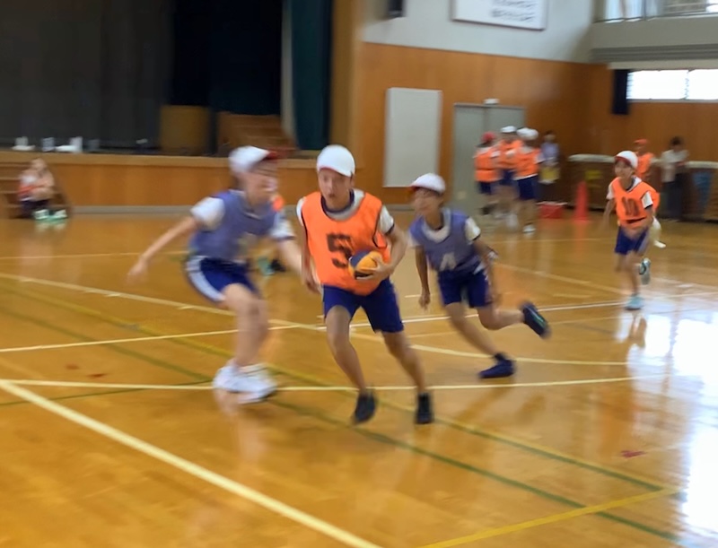 タグを取るという鬼ごっこ的な要素と、ボールを持って自由に駆け巡ることができる取り組み易さがあるので、子どもたちは、夢中になって楽しくプレーしています。また、得点を取るために自分がどのような動きをするとよいかを考えながらプレーすることも大切で、それをチームで相談したり振り返ったりして学びを深めています。