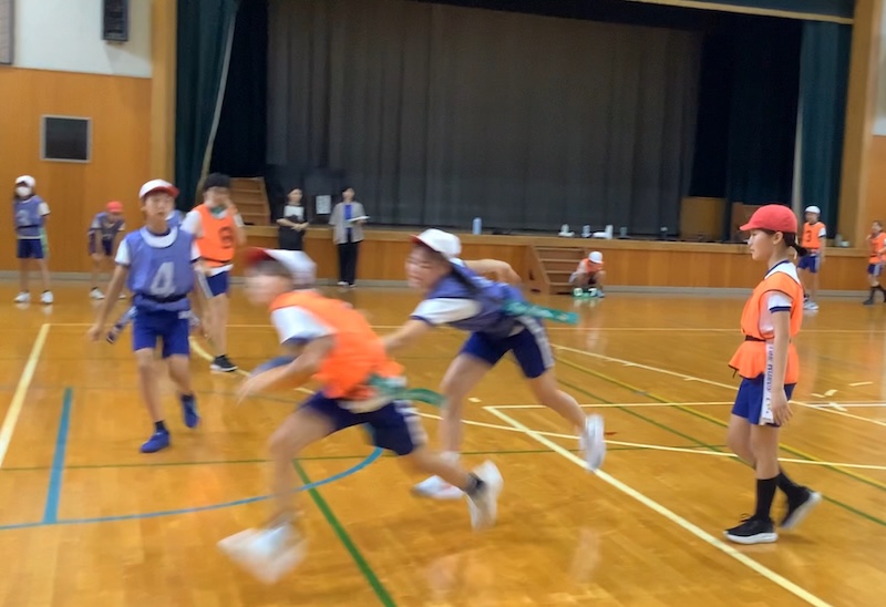 6年生は体育のボール運動の学習で、タグラグビーに取り組んでいます。